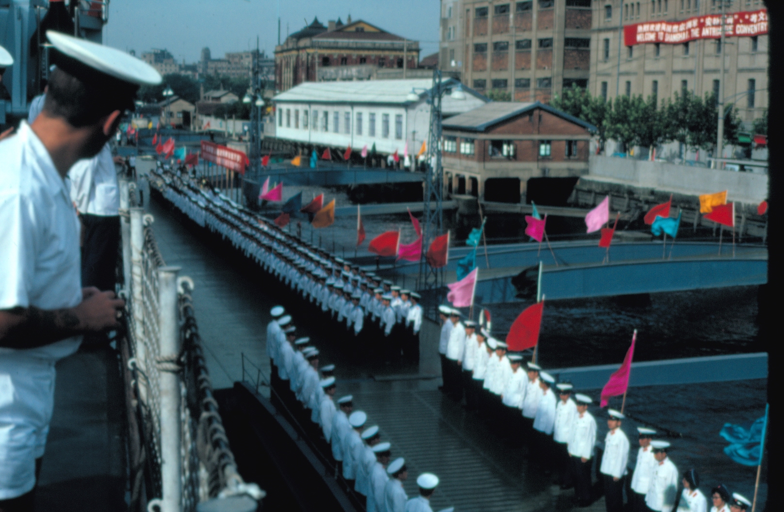 In September 1980, I was assigned to HMS Antrim(D-18) which along with several other ships made a formal visit to Shanghai, going up the Yangtze River and alongside in (Downtown, for a lack of a better term) Shanghai. During the trip up the river, you go right by Jiangnan Shipyard. I included several official 1979 photos of it taken by the French Navy when they made the same visit to Shanghai the year prior in 1979. Anyone going up the river to Shanghai gets an eyeful during the trip, including a comprehensive look at Jiangnan Shipyard and several Chinese Air Bases which had Chinese MIG-21s in the pattern over flying the river at the time.