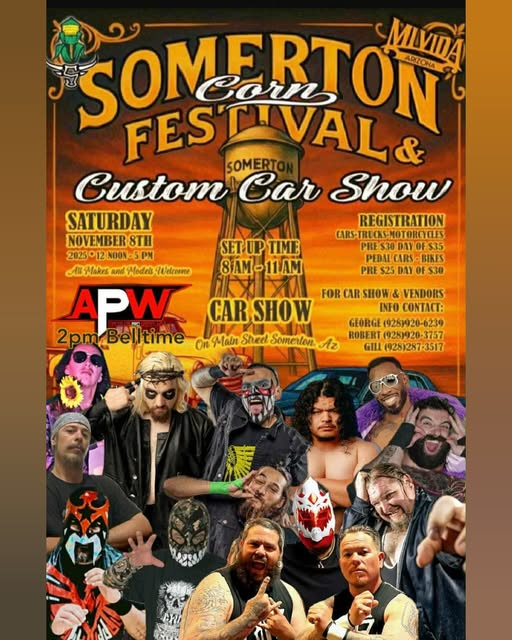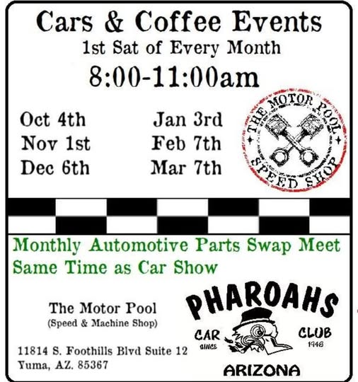 Hello Everyone ! Hope you are all doing well, healthy and safe.đđ Continued prayers to dear friends enduring Health issues and/or any hardships.* đđĽ°* Prayers to All who are having floods in your area *đ * *Special Prayers to All, for 100% to get well soon.đ* *Wishing All a **Happy Spooky Scary and Safe Halloween !!* *đđťđâ ď¸đđšđ* *REMINDER:* *Tomorrow* *November 1st**, 2025* 2026 MATO Online Registration will be open for any available spaces on their website. So if you did not get a space yet make sure to check spaces available ASAP Sorry I don't have any available. *https://www.caballeros.org/midnight-at-the-oasis/ <https://www.caballeros.org/midnight-at-the-oasis/>* Tomorrow in Heber Ca is a great event 12pm to 10am The *10th Annual 'Proyecto Heber Car Show'* [image: image.png] Also *Cars & Coffee* is this Saturday November 1st at The Motor Pool Speed & Machine Shop on Foothills Blvd, Yuma. [image: image.png] Next Saturday *November 8th *is the *Somerton Corn Festival -Car Show** - *in Somerton, Arizona Car Show 12 to 5pm - Set Up Rolling in 8am to 11am Hope to see you there. [image: image.png] *Thank You Everyone !!! * *Enjoy and Stay Safe !! * *Please DO NOT use Cell Phone* *and **NO TEXTING while driving **!!* *Many **Hugs [image: đ ] and Honks[image: đ˘]* *Alicia and Ralph *[image: đ] *Members and Friends * *Desert Cruisers Car Club Yuma, AZ* www.desertcruiserscciv.com *Facebook Page:* ( Desert Cruisers Car Club-Yuma, Az & Imperial Valley | Facebook <https://www.facebook.com/DesertCruisers>