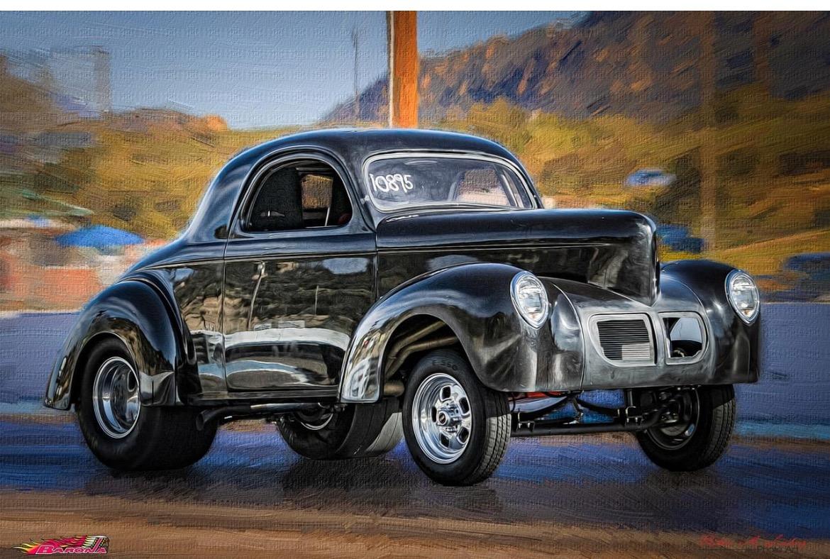 Hey, Mick,Here's a pic of the Willys Coupe in its updated stance (much better looking IMHO), at the local 1/8 mile. A bit stylized but accurate.And no, it's not steel/original. I wanted free rein with the car and did not want to worry about cutting up a piece of history, and/or worry about dealing with a lot of rust, (I get my fill of that on The Salt) so I specifically sought out a late model Tupperware body with a race chassis.Enjoy "Little Friday",Knapp On Thursday, October 9, 2025 at 06:18:30 AM PDT, Mick Coyne <bigmotor1@sbcglobal.net> wrote: Jim is full of surprises, what an interesting fella to talk to.He should write a book.Yes, of course he has a Willys coupe, attached. On Thursday, October 9, 2025 at 06:04:52 AM PDT, Jim Knapp on the road <jimstasmail@yahoo.com> wrote: Very small bit of BD/me trivia:In 1988 BD ran a flathead powered liner at Bonneville. Went 220mph or so and got himself a "2" Club membership. As the car was next "in line" in the Swamp Rat "family" it got the designation Swamp Rat 33.I'm not entirely certain how it came to be, but I would imagine BD new Tom Hannah and they decided Tom could use the number on his liner. Or, as is the rule, after three years of non use the number became available and Tom just commandeered it early this century for his build.I ended up with the car and thought about changing the 33 until I heard the history.Knapp On Thursday, October 9, 2025 at 05:27:10 AM PDT, Mick Coyne <bigmotor1@sbcglobal.net> wrote: Mick _______________________________________________ Willysguys mailing list -- willysguys@westcoastwillysclub.com To unsubscribe send an email to willysguys-leave@westcoastwillysclub.com _______________________________________________ Willysguys mailing list -- willysguys@westcoastwillysclub.com To unsubscribe send an email to willysguys-leave@westcoastwillysclub.com