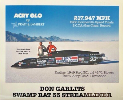 Very small bit of BD/me trivia:In 1988 BD ran a flathead powered liner at Bonneville. Went 220mph or so and got himself a "2" Club membership. As the car was next "in line" in the Swamp Rat "family" it got the designation Swamp Rat 33.I'm not entirely certain how it came to be, but I would imagine BD new Tom Hannah and they decided Tom could use the number on his liner. Or, as is the rule, after three years of non use the number became available and Tom just commandeered it early this century for his build.I ended up with the car and thought about changing the 33 until I heard the history.Knapp On Thursday, October 9, 2025 at 05:27:10 AM PDT, Mick Coyne <bigmotor1@sbcglobal.net> wrote: Mick _______________________________________________ Willysguys mailing list -- willysguys@westcoastwillysclub.com To unsubscribe send an email to willysguys-leave@westcoastwillysclub.com